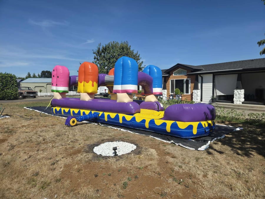 Looking for a way to make your next event unforgettable? Introducing The Popsicles, the vibrant and exciting waterslide that promises hours of cool entertainment! Measuring an impressive 28L x 10W x 14H, The Popsicles is designed to be the centerpiece of any gathering, offering thrills and laughter for kids and adults alike. Despite its fun name, remember—The Popsicles is a waterslide, not a snowcone! Perfect for backyard parties, community events, school celebrations, and more, this waterslide brings a burst of summer joy wherever it goes.