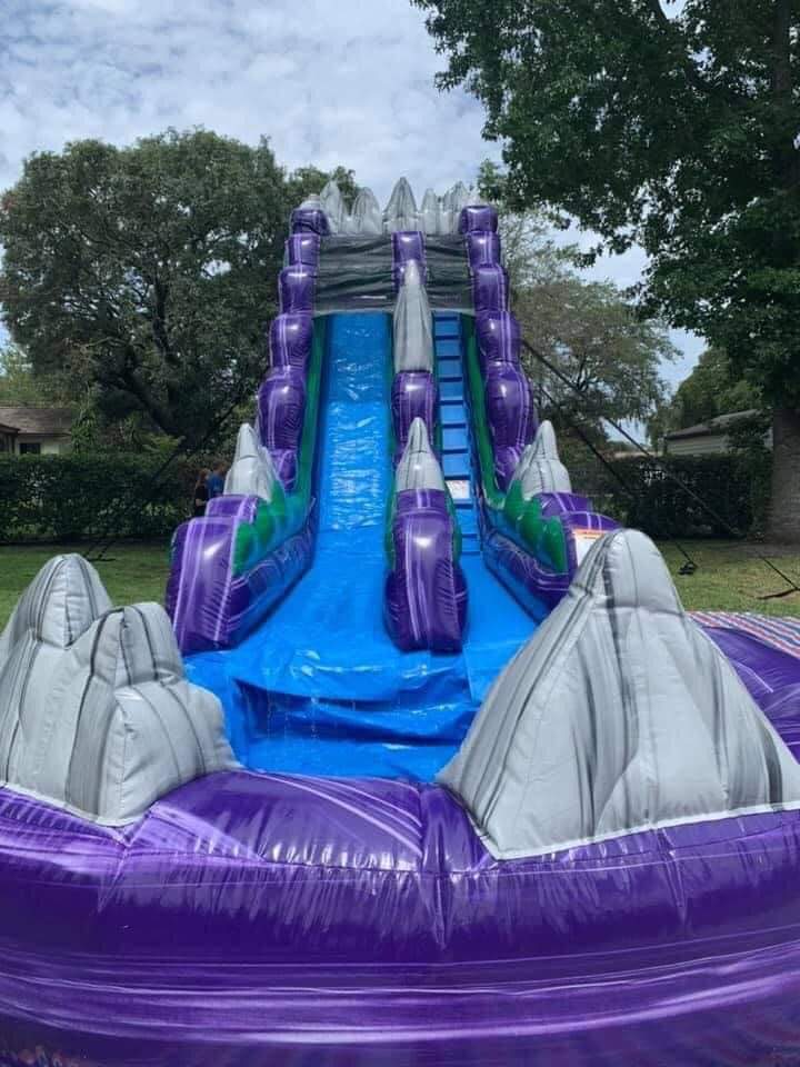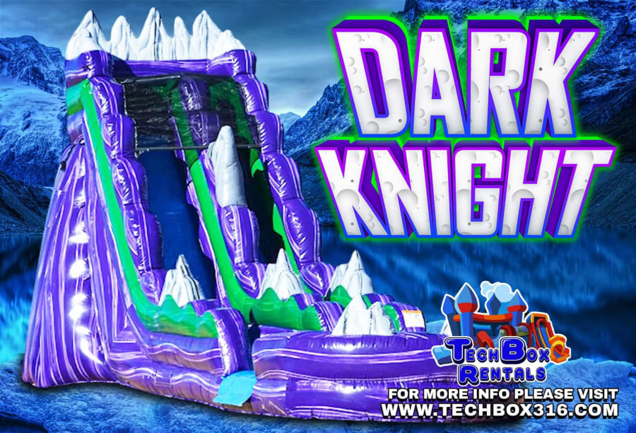 if you're looking for rush then the Dark knight is just what you need for those hot summer days its unique colors and style will be the life of the party this 20ft waterslide not only is big but has a big pool at the bottom as well and its perfect fr any occasion don't worry about a thing let us bring the fun to you on your next event we take care of everything