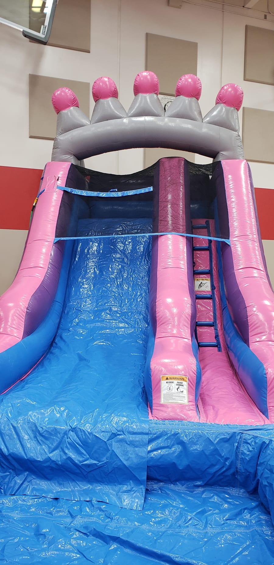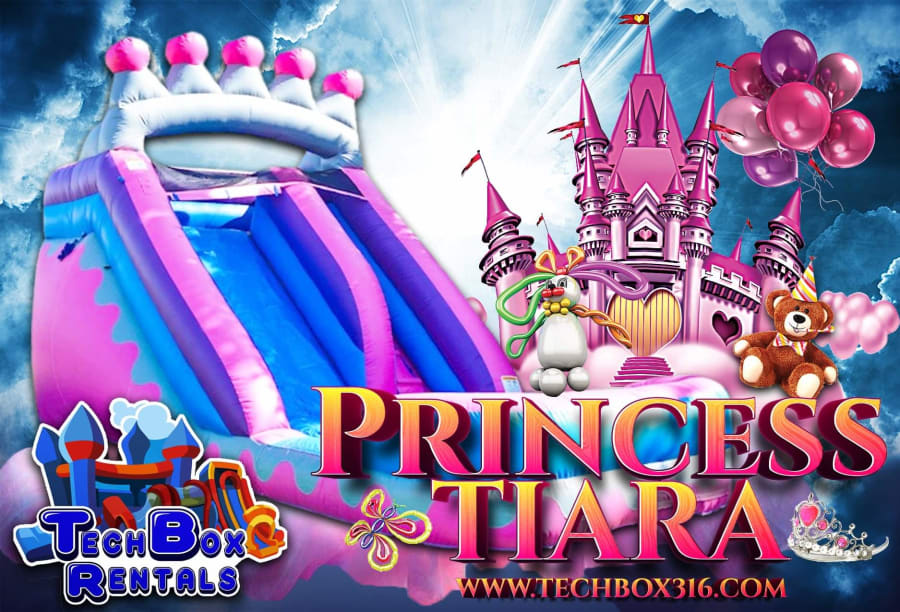 The Princess Tiara 14 Ft Slide is perfect for the princesses out there! The tiara that gives this slide its name sits at the top, while this slide’s pink and purple hues invoke the classic colors of royalty! with the bright Pink, blue and Purple will be a day to remember and It's an ideal inflatable for any birthday parties and events