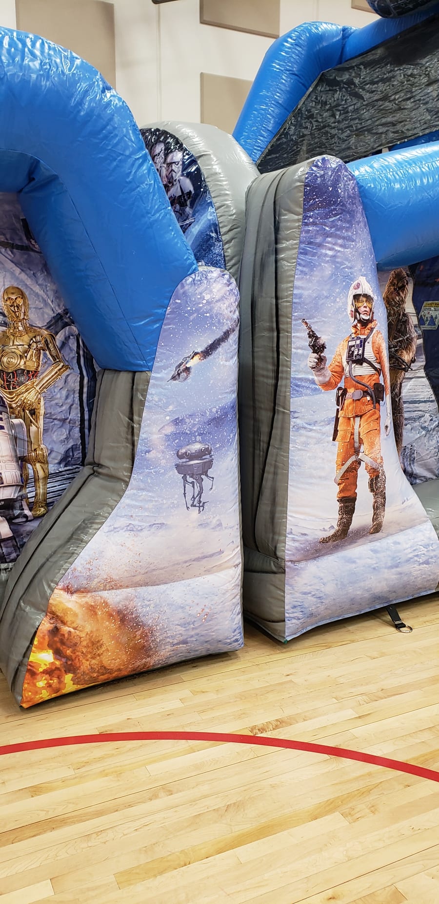 Was Designed in partnership with Lucasfilm and made with premium materials by master craftsman, the STAR WARS 50' Obstacle Course Wet or Dry is designed with fully licensed digital artwork and unique Imperial AT-AT and Millennium Falcon embellishments up top. It is an epic ride that is suitable for all occasions.