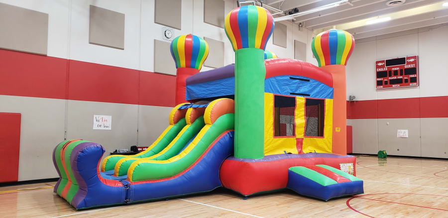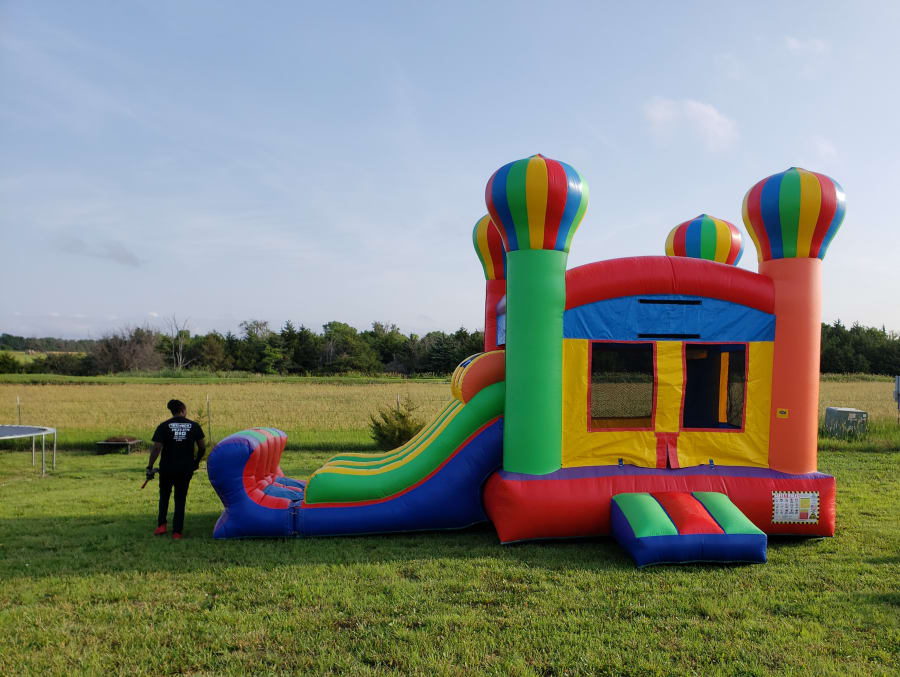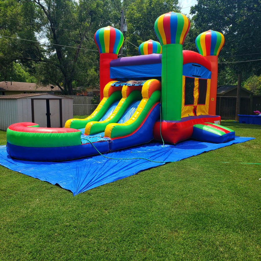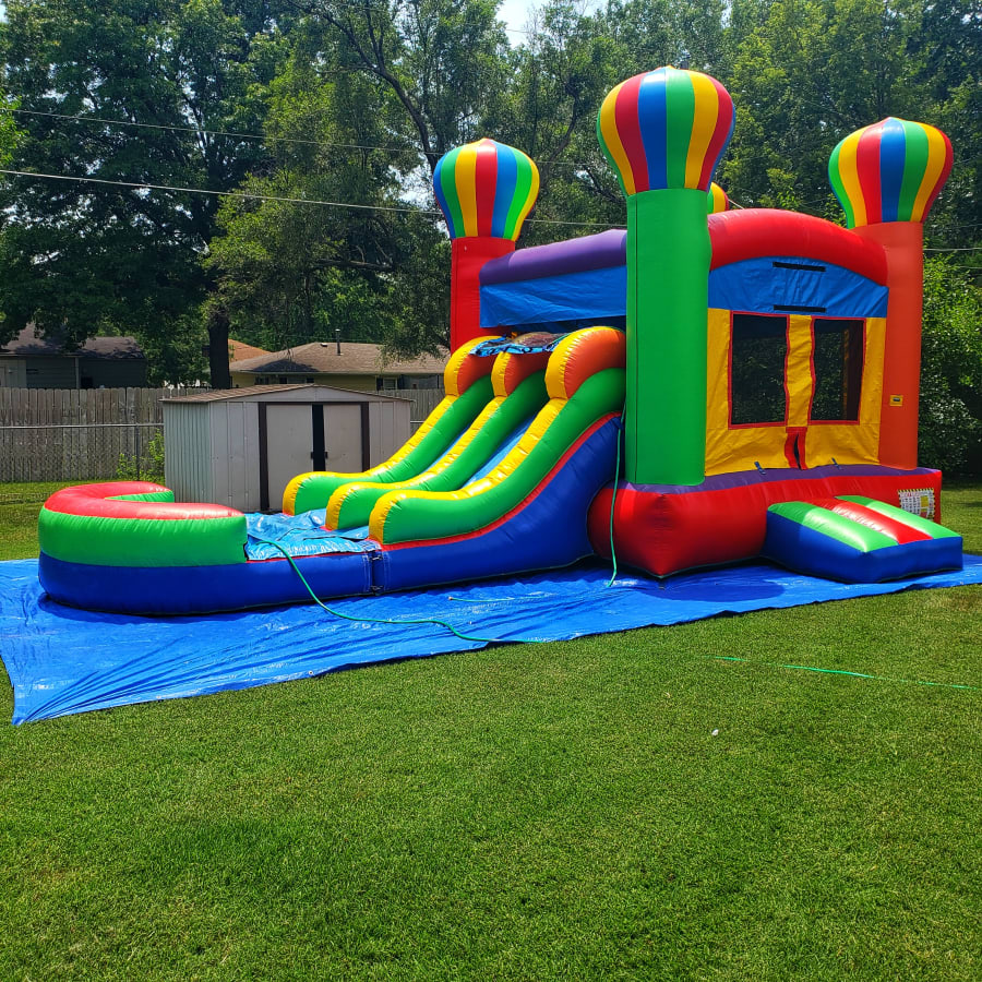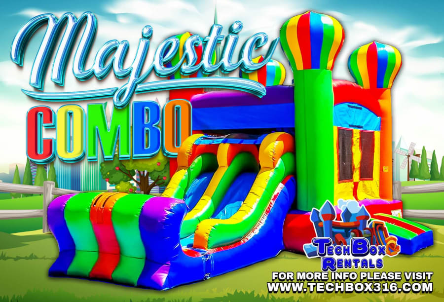 THE MAJESTIC This unit can be used wet or dry. The Majestic Combo bounce house brings the best of both a bouncer and a dual waterslide! Book this combo for your next event and your sure to have hours of fun on those hot summer days! It features a jumping area with dual exit slides so your guests can race each other!