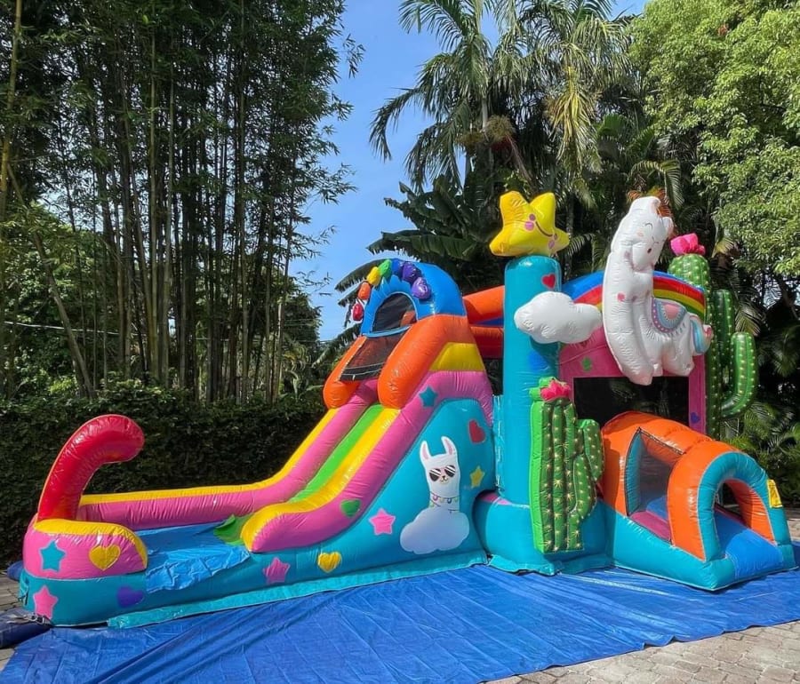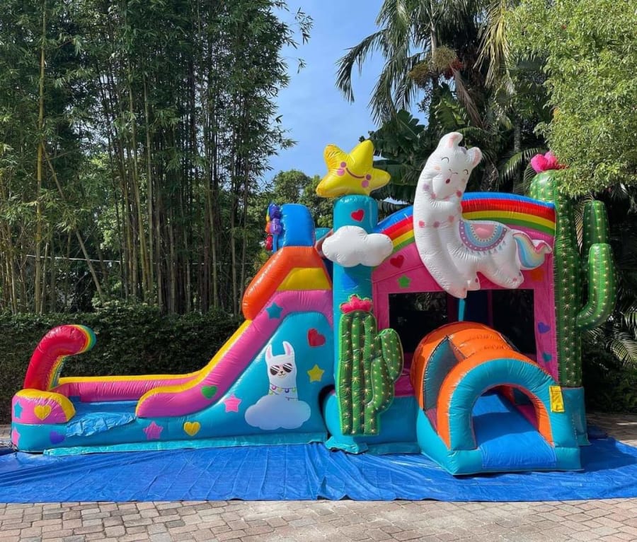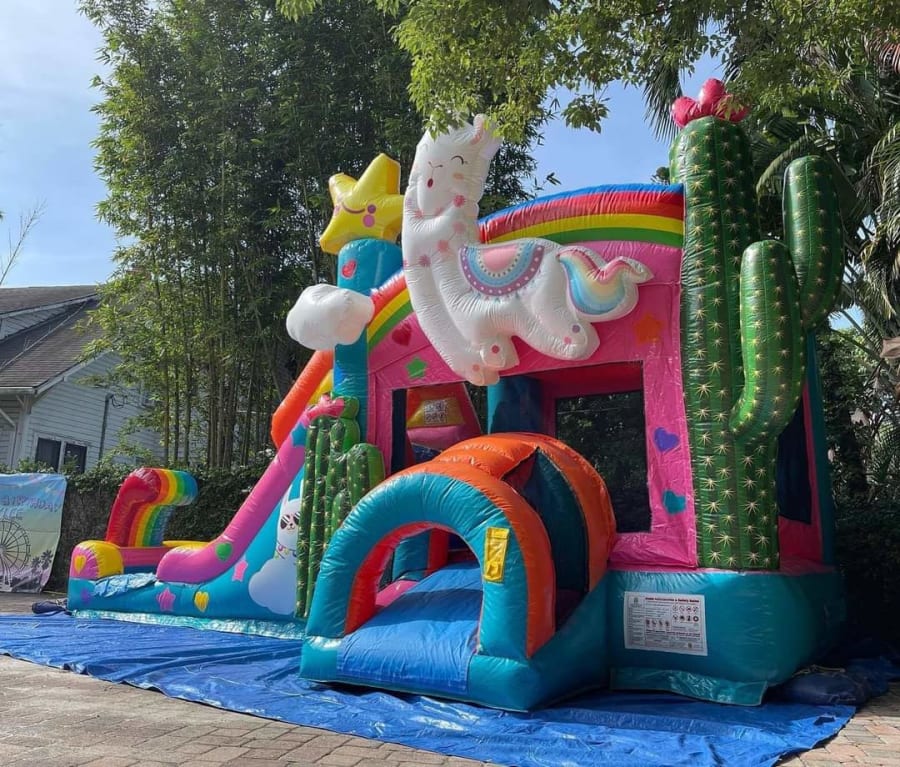 The llama combo is a unique unit with lots of colors and lots of fun 🥳 this super cool combo comes with a basket hoop inside slide and can be used either as a dry unit for spring fall or winter or as a wet unit in the summer with water this unit has unique colors and 3d printed llama that will definitely pop out at your next party well what are you waiting for? See you soon :) servicing wichita ks and surrounding areas click click submit