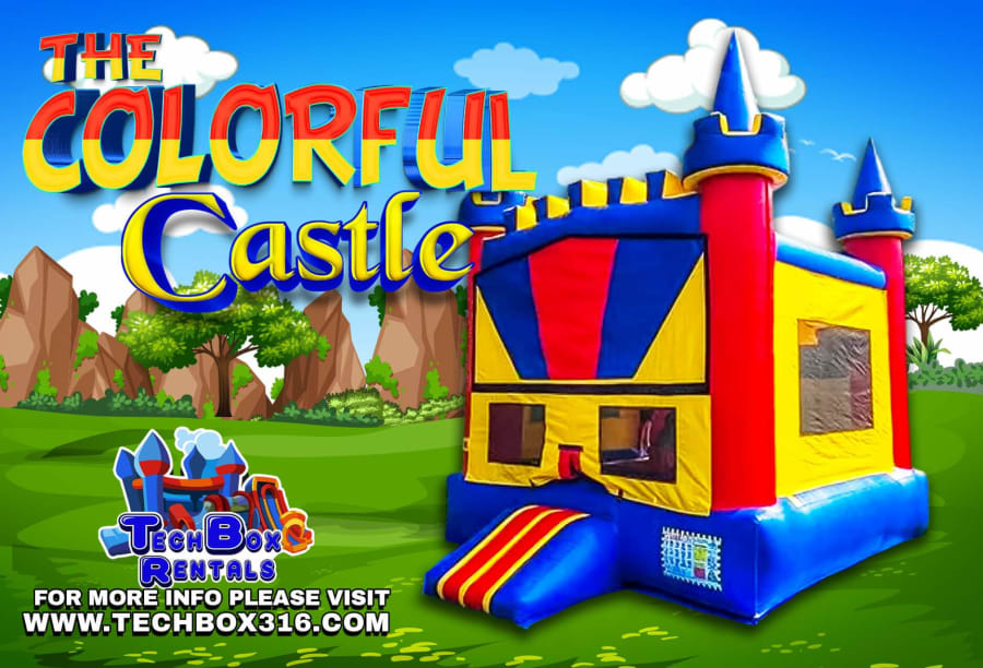 This unit features bright colors (red, yellow, and blue) at a convenient size, which makes it perfect for both boys and girls. This unique bouncy castle features 4 pillars on the top and also bricks in front to give it a more vivid castle look. inside you'll find a 13x13 jumping area with a basketball hoop for hours of fun and up top of the unit a emergency exit for safety.