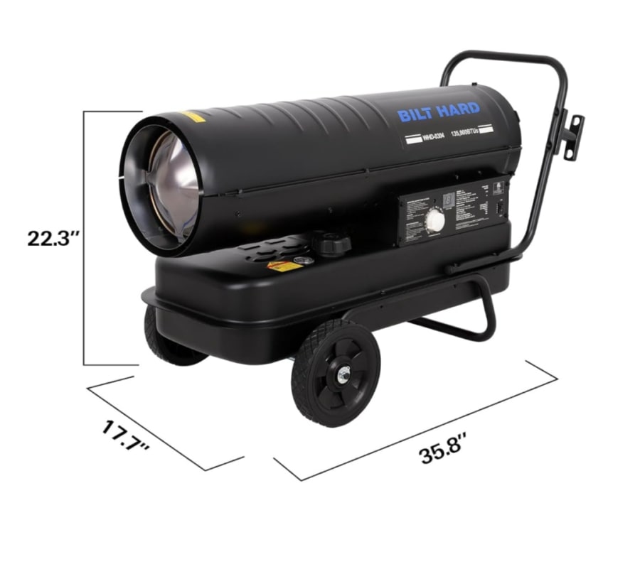 Powerful, portable heating for job sites, garages, construction zones, and outdoor events. The Kerosene/Diesel Space Heater delivers 135,000 BTU of forced-air heat for fast, reliable warmth. Built for rugged use and fuel flexibility, this unit is ideal when electric heat isn't available. πŸ”₯πŸ› οΈ