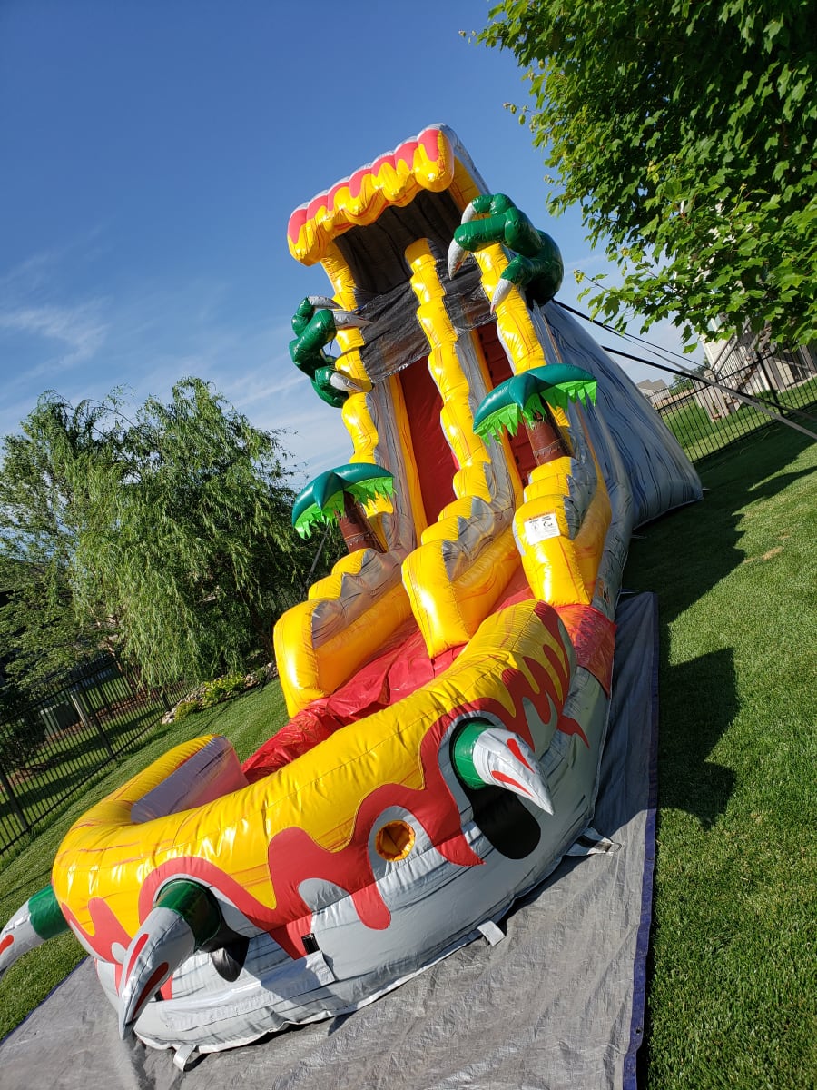 Kids love dinosaurs and they will love the 20ft T Rex waterslide. This unit is a fantastic rental choice for any party this awesome and unique unit has a safety netting to prevent kids from standing up and jumping from the top while ensuring that kids can slide down securely.