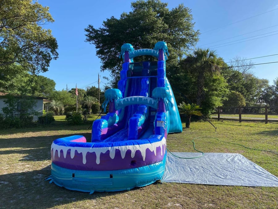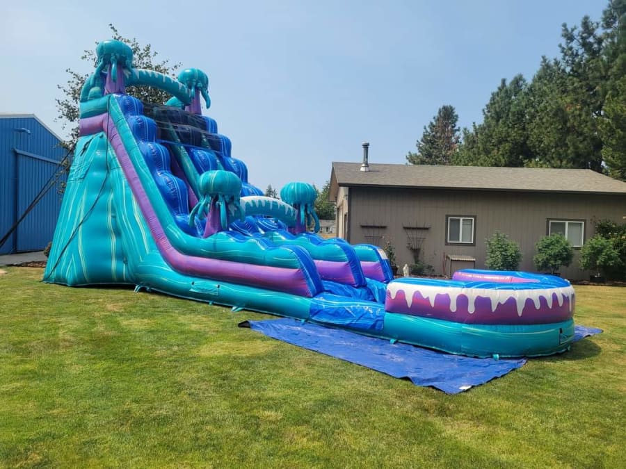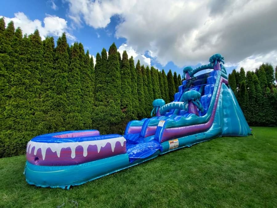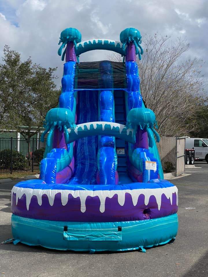 This Astonishing unit is 20ft Tall and has one of the steepest drops its bright marble blue colors and jellyfish on the top and bottom make this unit stand out it’s sure to turn heads at your next event