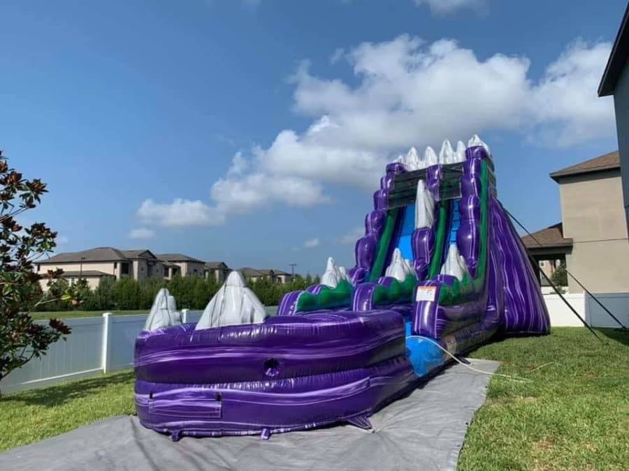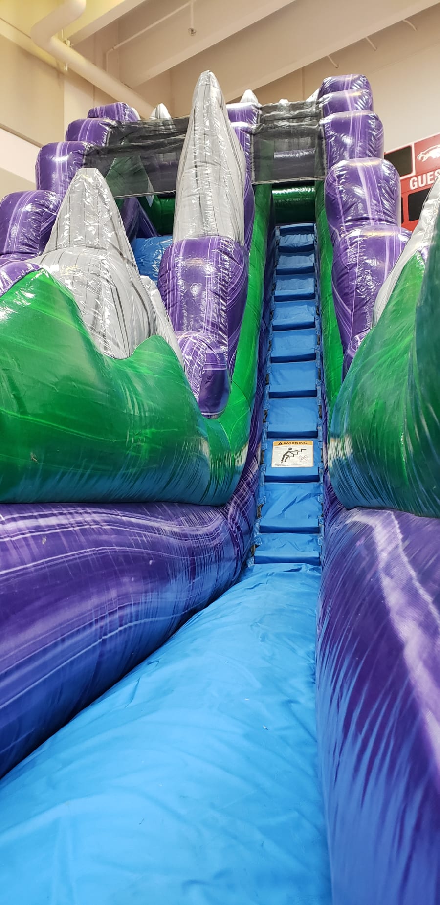 if you're looking for rush then the Dark knight is just what you need for those hot summer days its unique colors and style will be the life of the party this 20ft waterslide not only is big but has a big pool at the bottom as well and its perfect fr any occasion don't worry about a thing let us bring the fun to you on your next event we take care of everything