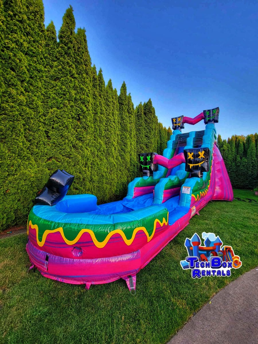 Looking to make a splash at your next event or party? Look no further than the Cyber Splash, an exhilarating 20ft waterslide designed to provide hours of outdoor fun and excitement! Whether you're hosting a backyard birthday bash, corporate event, or community gathering, this waterslide is your ticket to unforgettable memories.