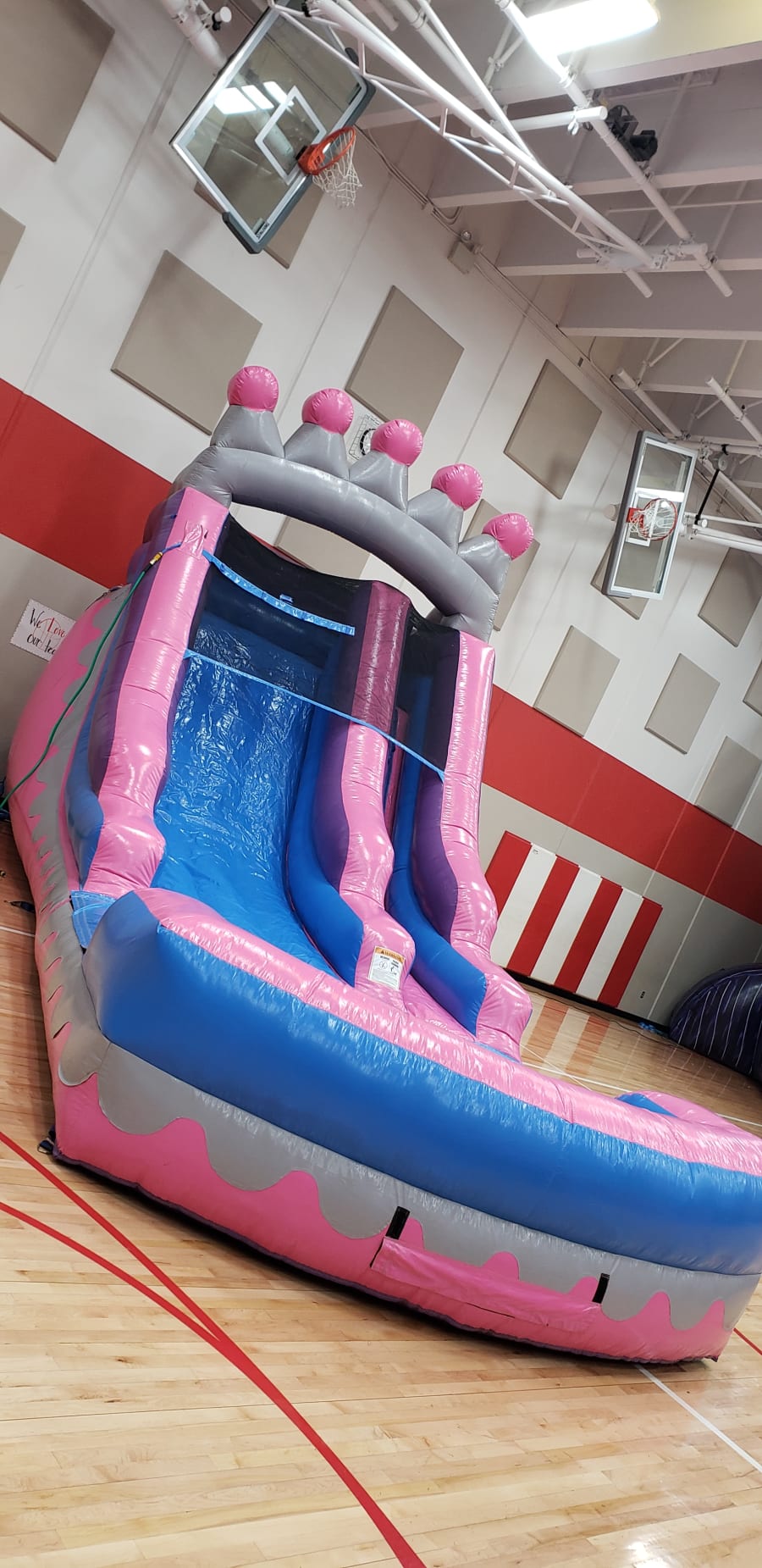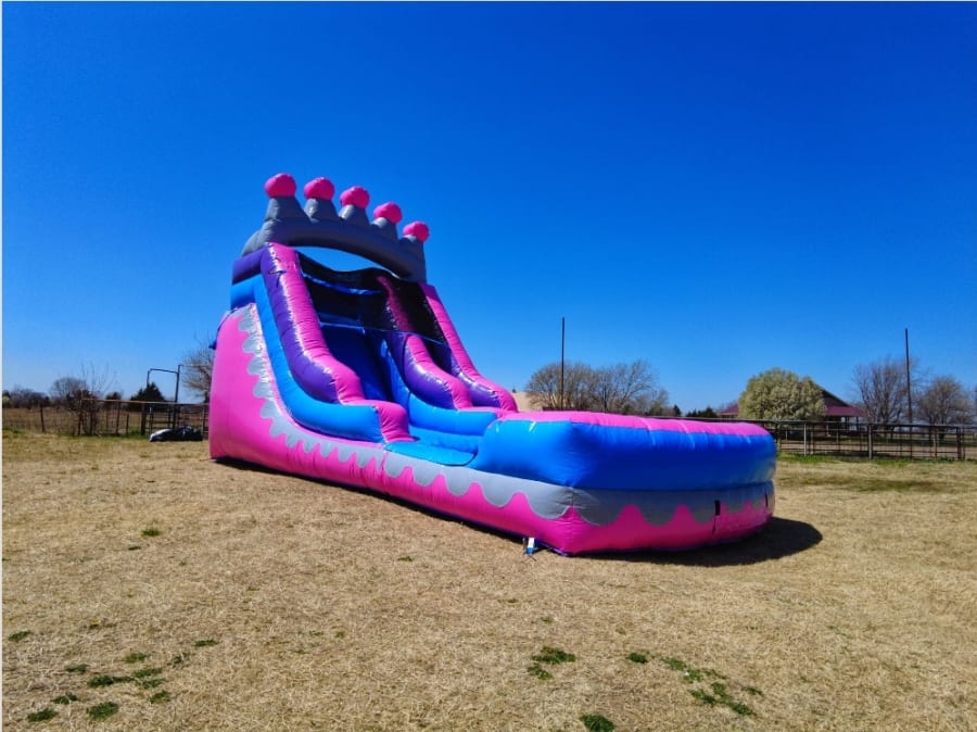 The Princess Tiara 14 Ft Slide is perfect for the princesses out there! The tiara that gives this slide its name sits at the top, while this slide’s pink and purple hues invoke the classic colors of royalty! with the bright Pink, blue and Purple will be a day to remember and It's an ideal inflatable for any birthday parties and events