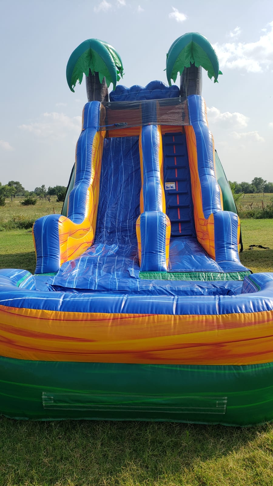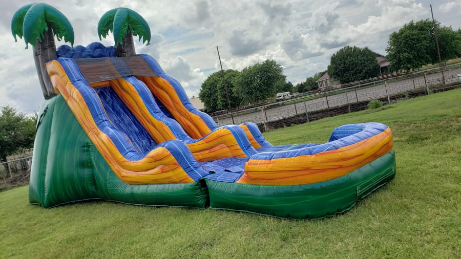 The 17 Tropical Wave is one of our newest additions this bright and colorful Slide features a water misting system that automatically applies a layer of water to the bottom of the slide. This feature eliminates the need for re-adjustment. This Brand New Unit will bring tons of fun for all ages this unit can be used as a wet unit or dry as well